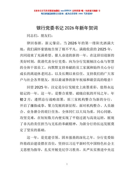 / 银行党委书记2026年新年贺词