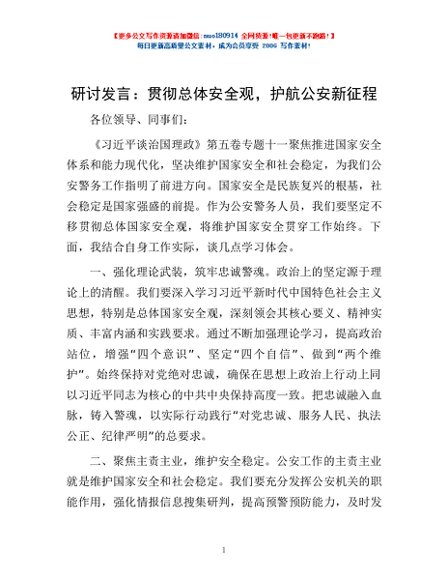/ 研讨发言:贯彻总体安全观,护航公安新征程
