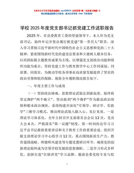 / 学校2025年度党支部书记抓党建工作述职报告