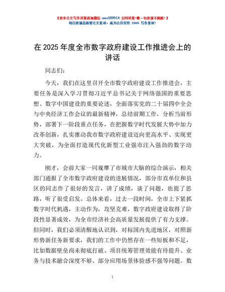 / 在2025年度全市数字政府建设工作推进会上的讲话