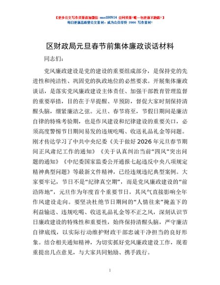 / 区财政局元旦春节前集体廉政谈话材料