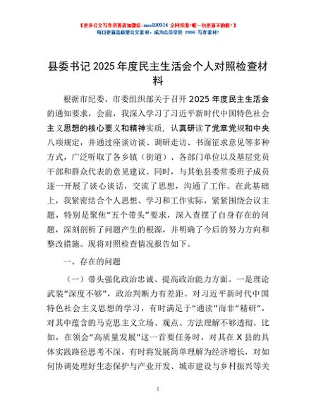 / 县委书记2025年度民主生活会个人对照检查材料