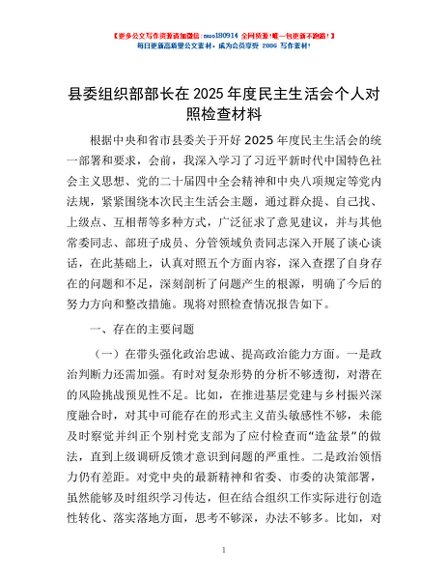 / 县委组织部部长在2025年度民主生活会个人对照检查材料