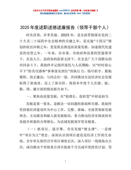 / 2025年度述职述德述廉报告(领导干部个人)