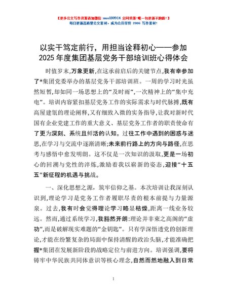 / 以实干笃定前行,用担当诠释初心——参加2025年度集团基层党务干部培训班心得体会