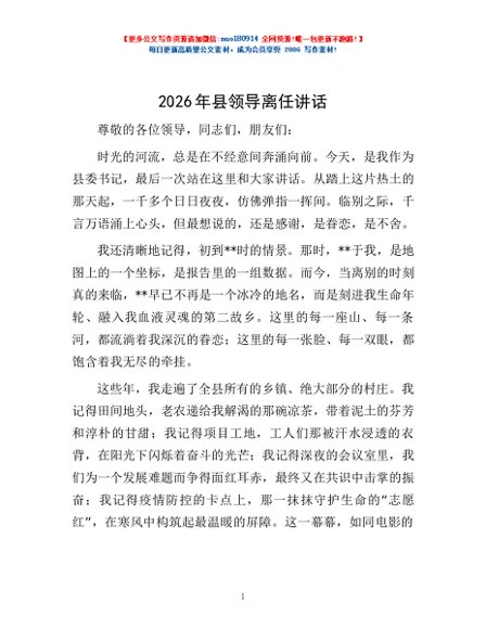 / 2026年县领导离任讲话