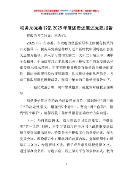 / 税务局党委书记2025年度述责述廉述党建报告
