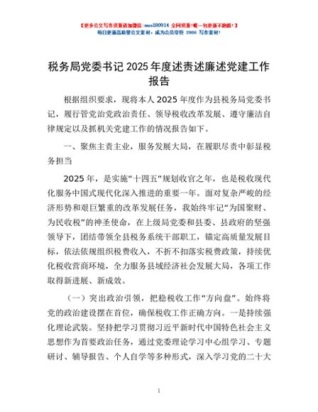 / 税务局党委书记2025年度述责述廉述党建工作报告
