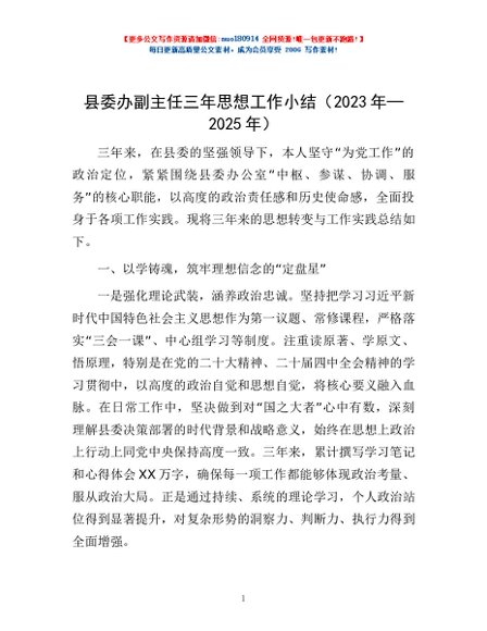 / 县委办副主任三年思想工作小结(2023年—2025年)