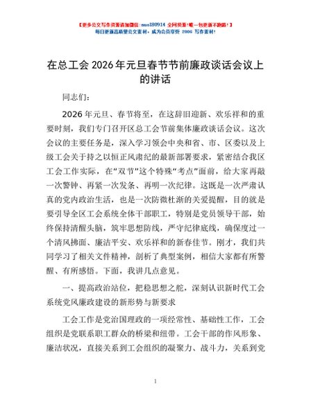 / 在总工会2026年元旦春节节前廉政谈话会议上的讲话