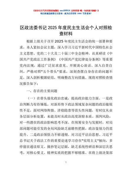 / 区政法委书记2025年度民主生活会个人对照检查材料