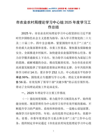 / 市农业农村局理论学习中心组2025年度学习工作总结
