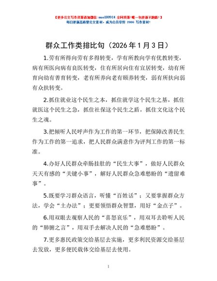 / 群众工作类排比句(2026年1月3日)