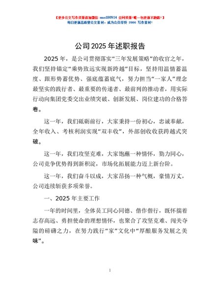 公司2025年述职报告