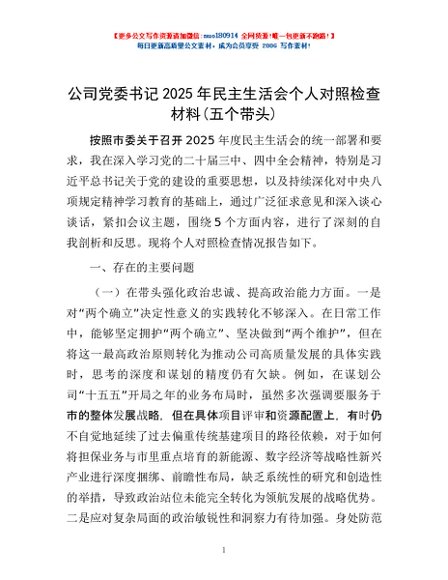 / 公司党委书记2025年民主生活会个人对照检查材料(五个带头)_001