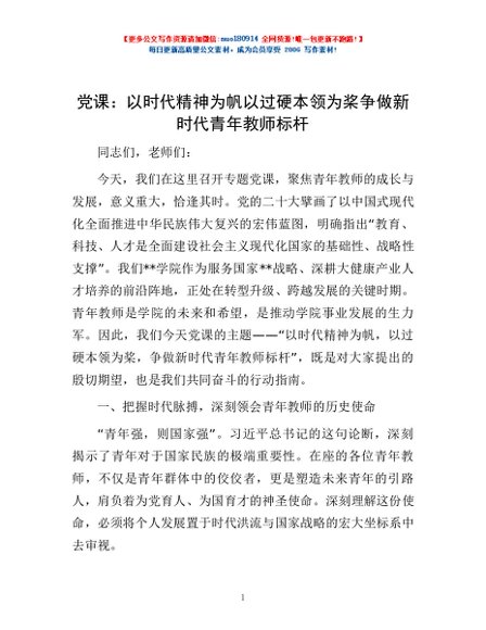 / 党课:以时代精神为帆 以过硬本领为桨争做新时代青年教师标杆