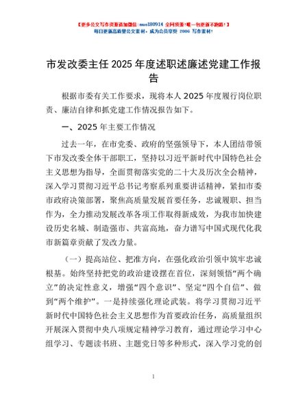 / 市发改委主任2025年度述职述廉述党建工作报告