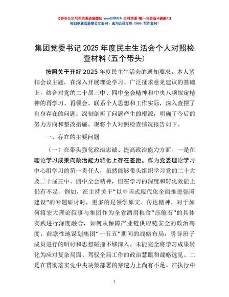 / 集团党委书记2025年度民主生活会个人对照检查材料(五个带头)_002
