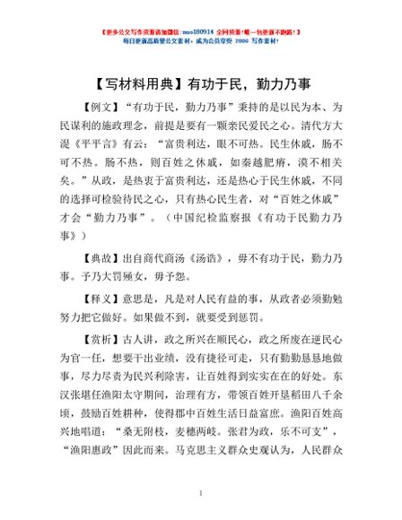 / 【写材料用典】有功于民,勤力乃事