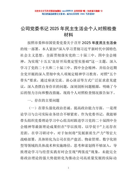 / 公司党委书记2025年民主生活会个人对照检查材料_001