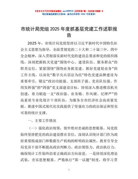 / 市统计局党组2025年度抓基层党建工作述职报告