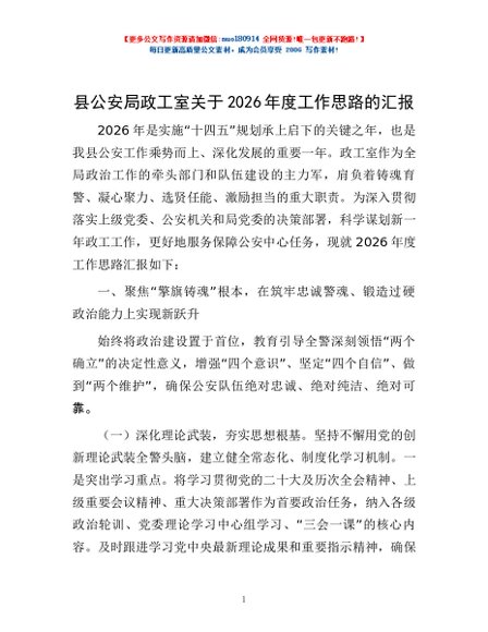 / 县公安局政工室关于2026年度工作思路的汇报
