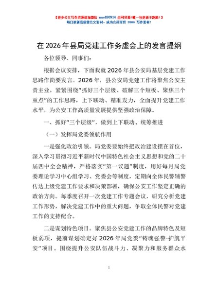 / 在2026年县局党建工作务虚会上的发言提纲