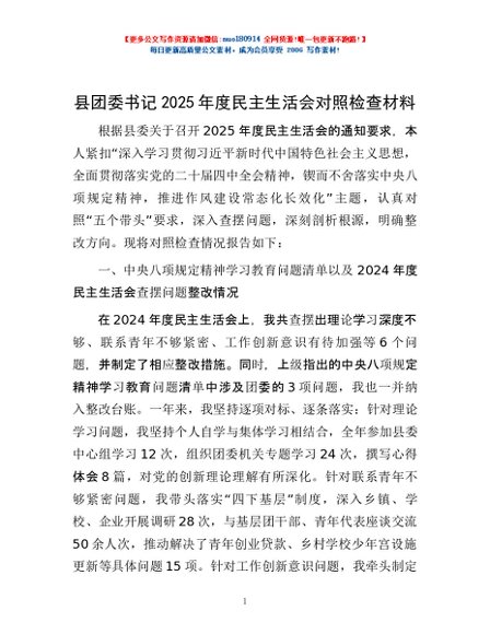 领导班子成员2025年度民主生活会个人对照检查材料(六个带头)