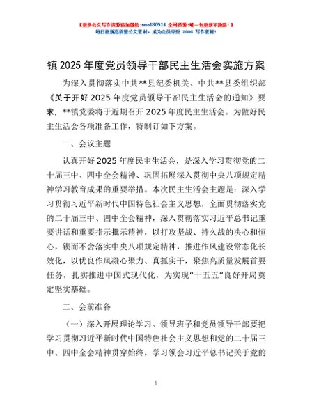 / 镇2025年度党员领导干部民主生活会实施方案