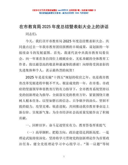 / 在市教育局2025年度总结暨表彰大会上的讲话