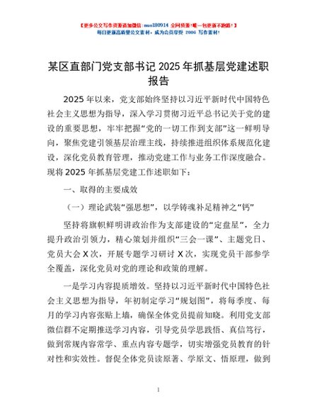/ 某区直部门党支部书记2025年抓基层党建述职报告