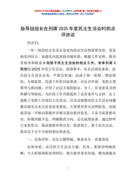 / 指导组组长在列席2025年度民主生活会时的点评讲话