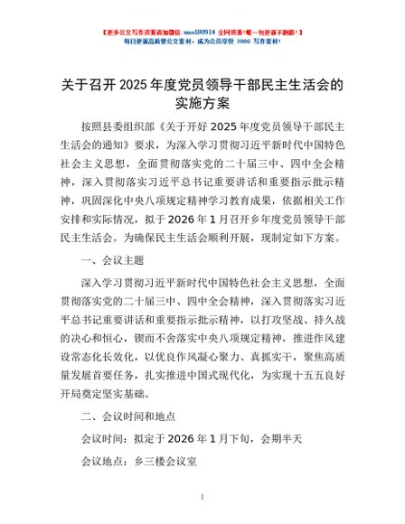 / 关于召开2025年度党员领导干部民主生活会的实施方案
