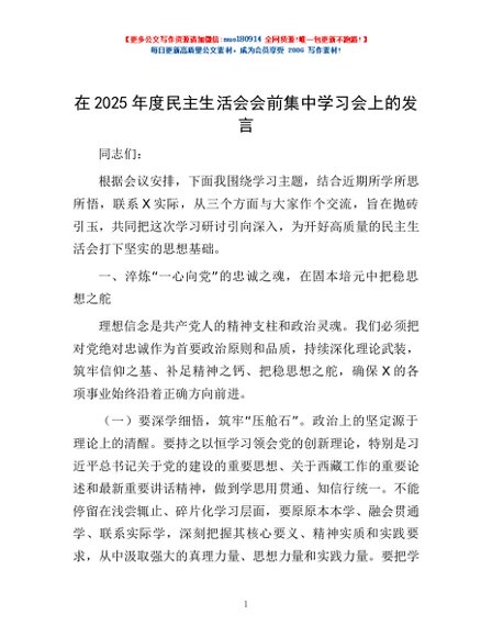 / 在2025年度民主生活会会前集中学习会上的发言