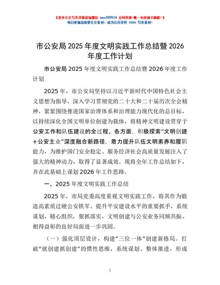 / 市公安局2025年度文明实践工作总结暨2026年度工作计划