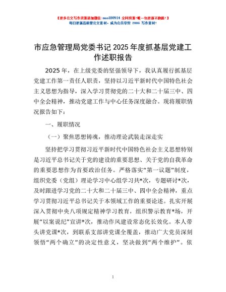 / 市应急管理局党委书记2025年度抓基层党建工作述职报告
