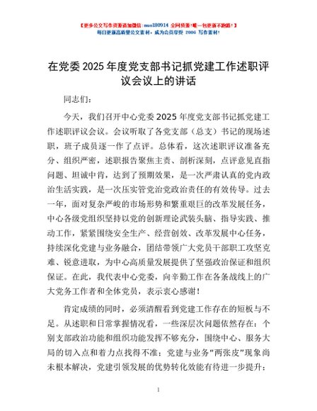 / 在党委2025年度党支部书记抓党建工作述职评议会议上的讲话