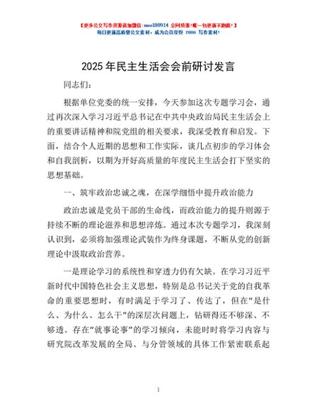 / 2025年民主生活会会前研讨发言