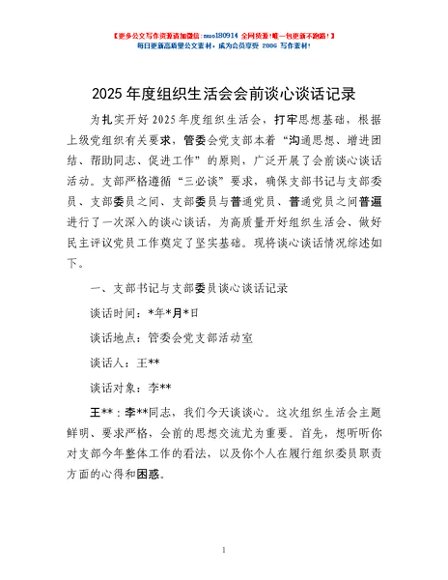/ 2025年度组织生活会会前谈心谈话记录