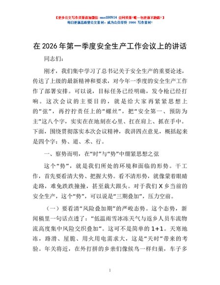 / 在2026年第一季度安全生产工作会议上的讲话