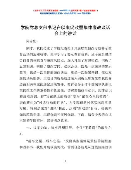/ 学院党总支部书记在以案促改暨集体廉政谈话会上的讲话