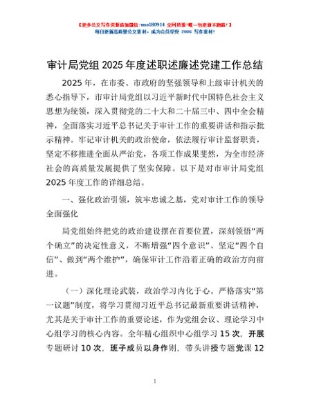 / 审计局党组2025年度述职述廉述党建工作总结