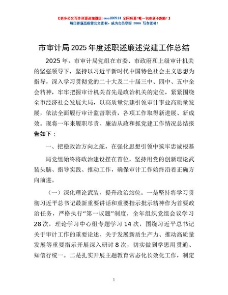 / 市审计局2025年度述职述廉述党建工作总结