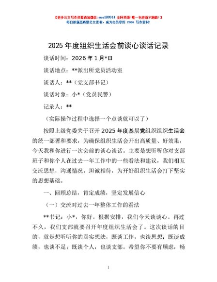 / 2025年度组织生活会前谈心谈话记录