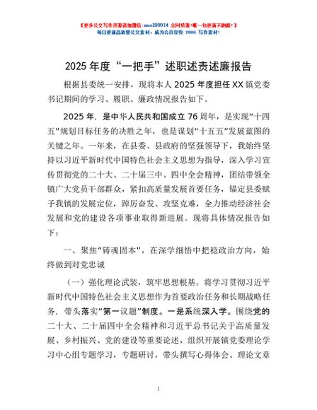 / 2025年度“一把手”述职述责述廉报告