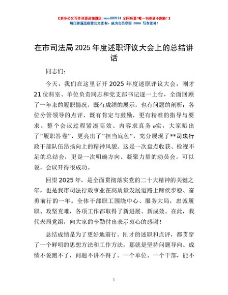 / 在市司法局2025年度述职评议大会上的总结讲话