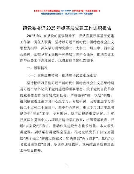 / 镇党委书记2025年抓基层党建工作述职报告