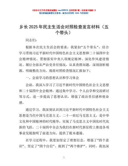 / 乡长2025年民主生活会对照检查发言材料(五个带头)