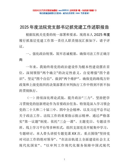 / 2025年度法院党支部书记抓党建工作述职报告