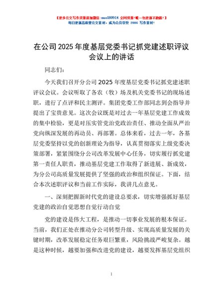 / 在公司2025年度基层党委书记抓党建述职评议会议上的讲话